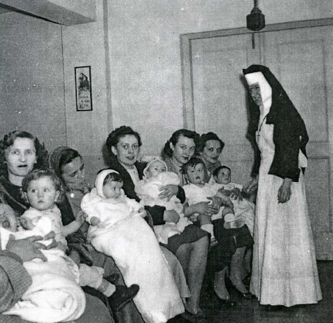 Mothers and babies waiting to be helped by Felician Sisters at the Catholic Resettlement Day Nursery.