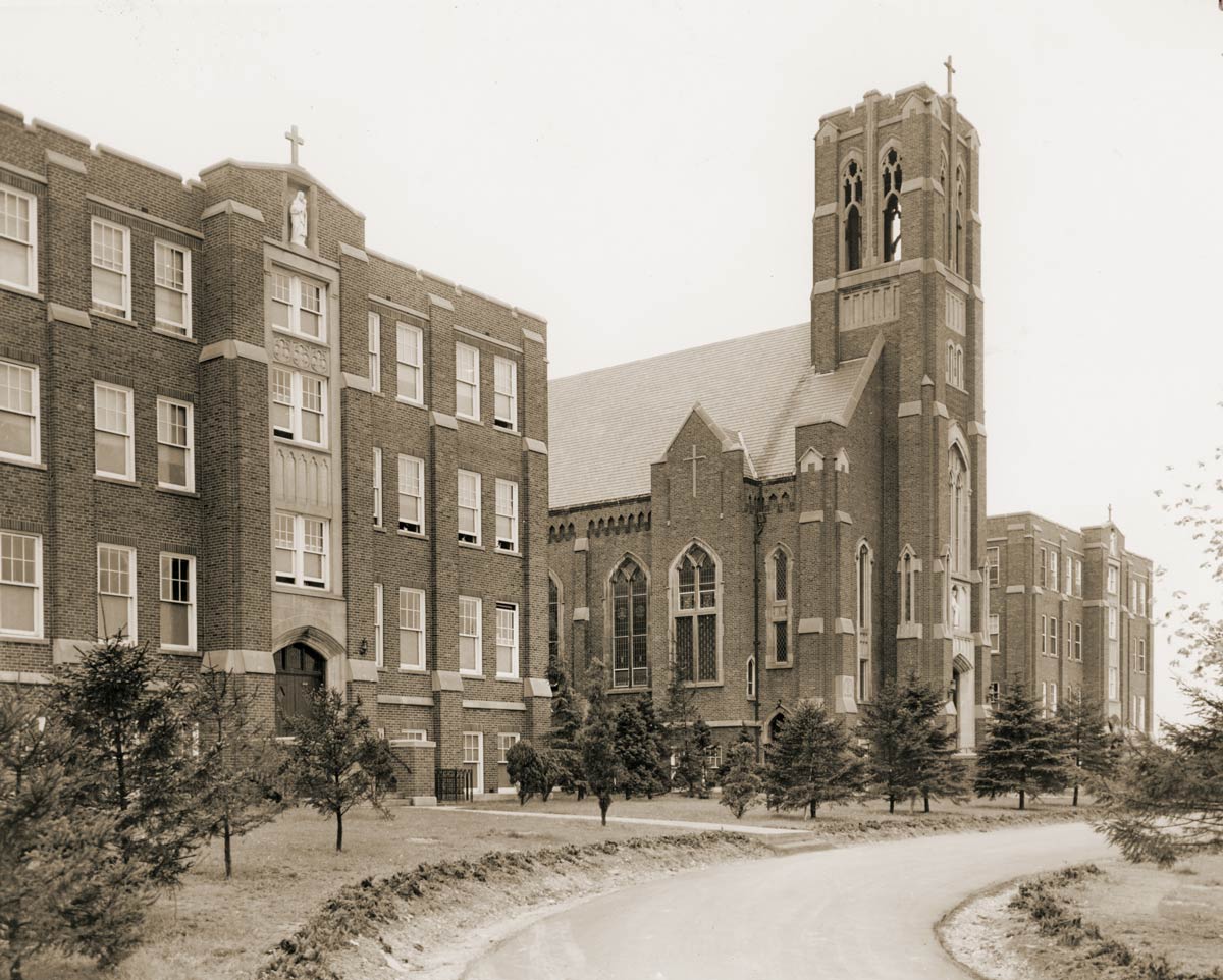 An early photograph of the completed and landscaped Our Lady of the Sacred Heart Motherhouse in the 1930s.