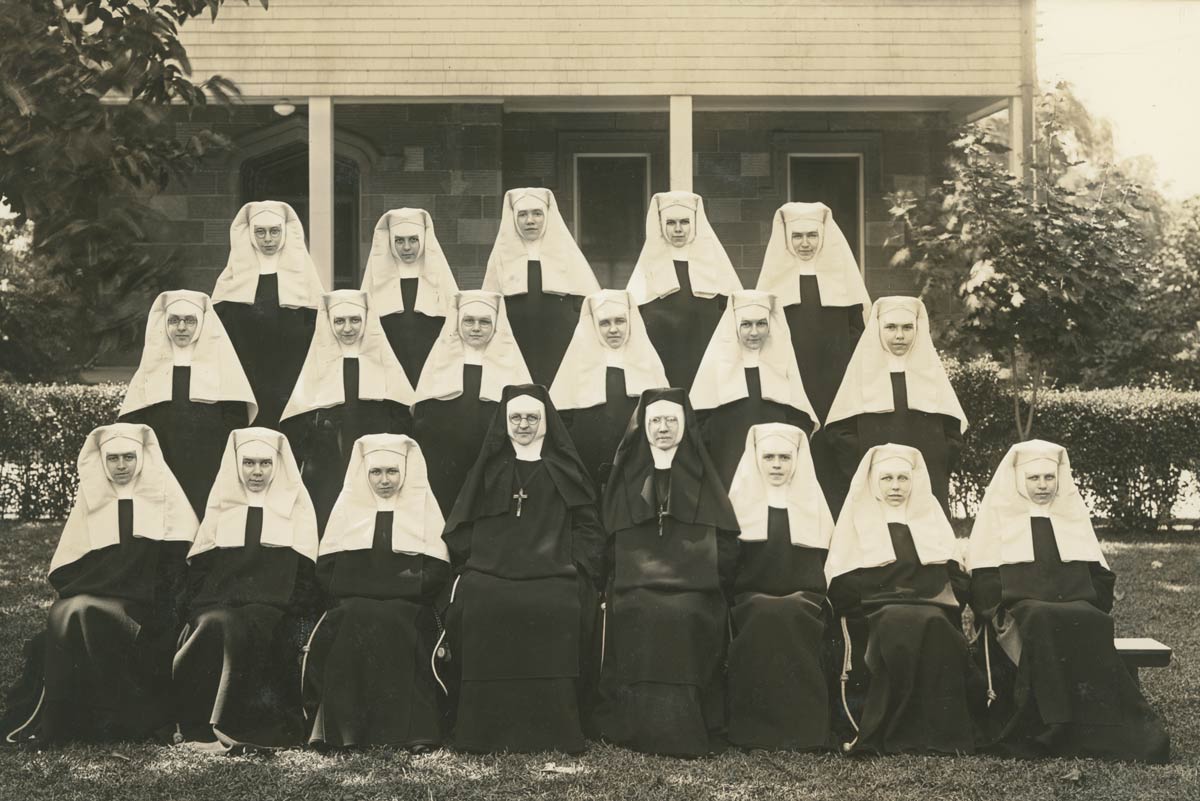 One of the first groups of young women who entered the Felician Congregation in Enfield is photographed at the province in Lodi, New Jersey, where they attended the novitiate in the early years.