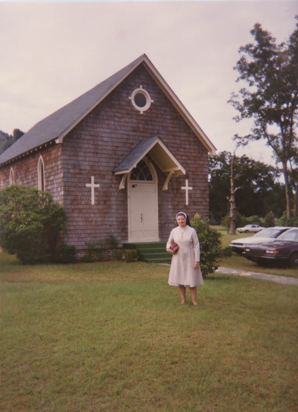 Sister Mary Alexander Klawinski on the lawn of St. Ann Church in Kingstree, SC, during a visit to the Felician Center ministry there. Sister Alexander, provincial minister in Coraopolis, supported Sister Mary Johnna Ciezobka in her exploration of the ministry.