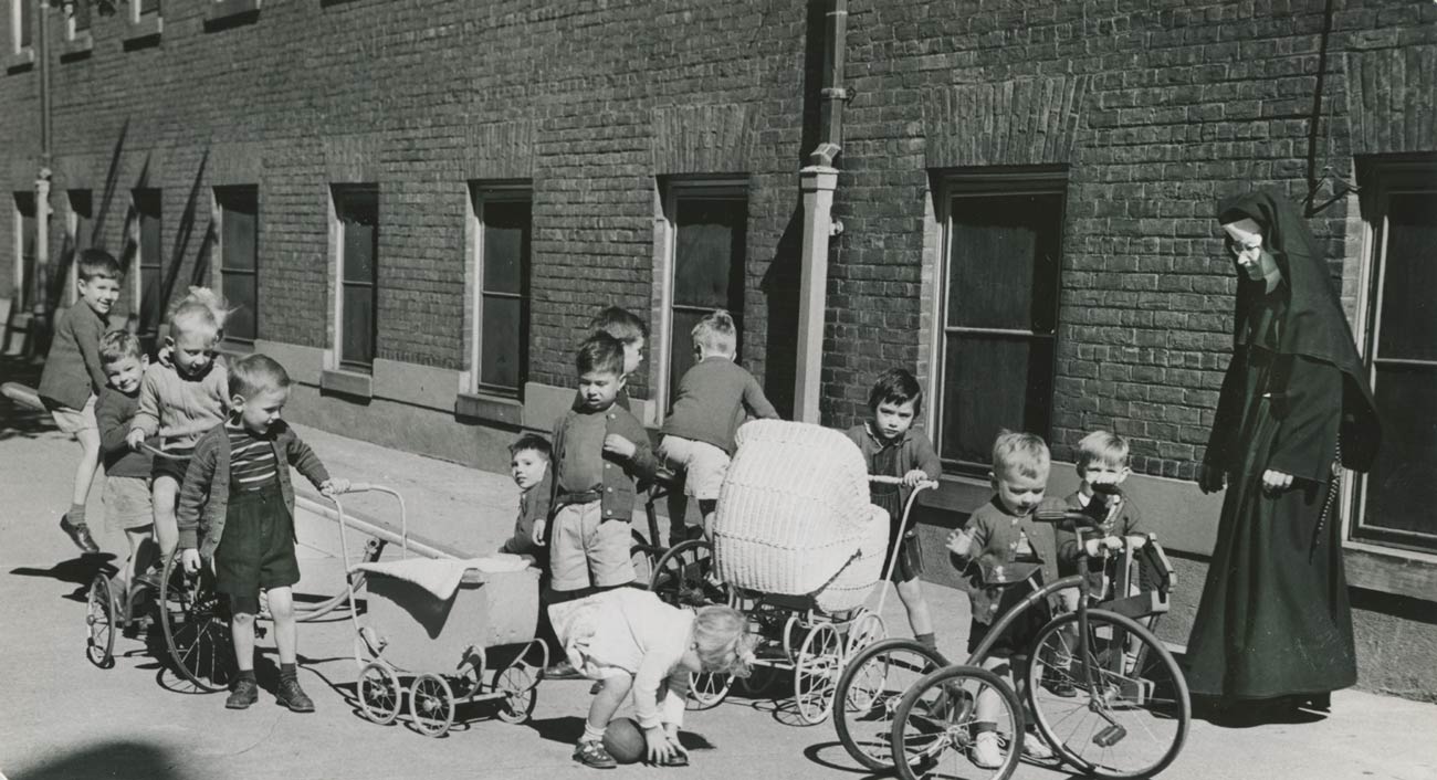 This photo of children playing alongside the Immaculate Conception Home under the watch of a Felician Sister was taken in 1949 when the facility housed a staff of 21 sisters.