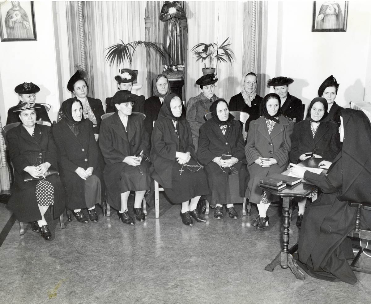 In this photo, Mother Mary Sylvina Perska is conducting a meeting with women from the Third Order of St Francis – Secular at St. Stanislaus, where the group met to learn about St. Francis and the core values and beliefs of Franciscans. Catholicism is deeply tied to Polish heritage and history.