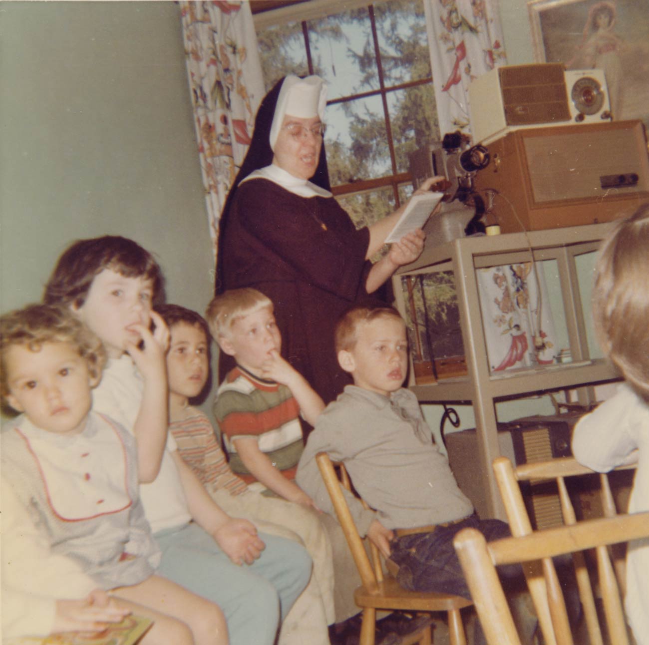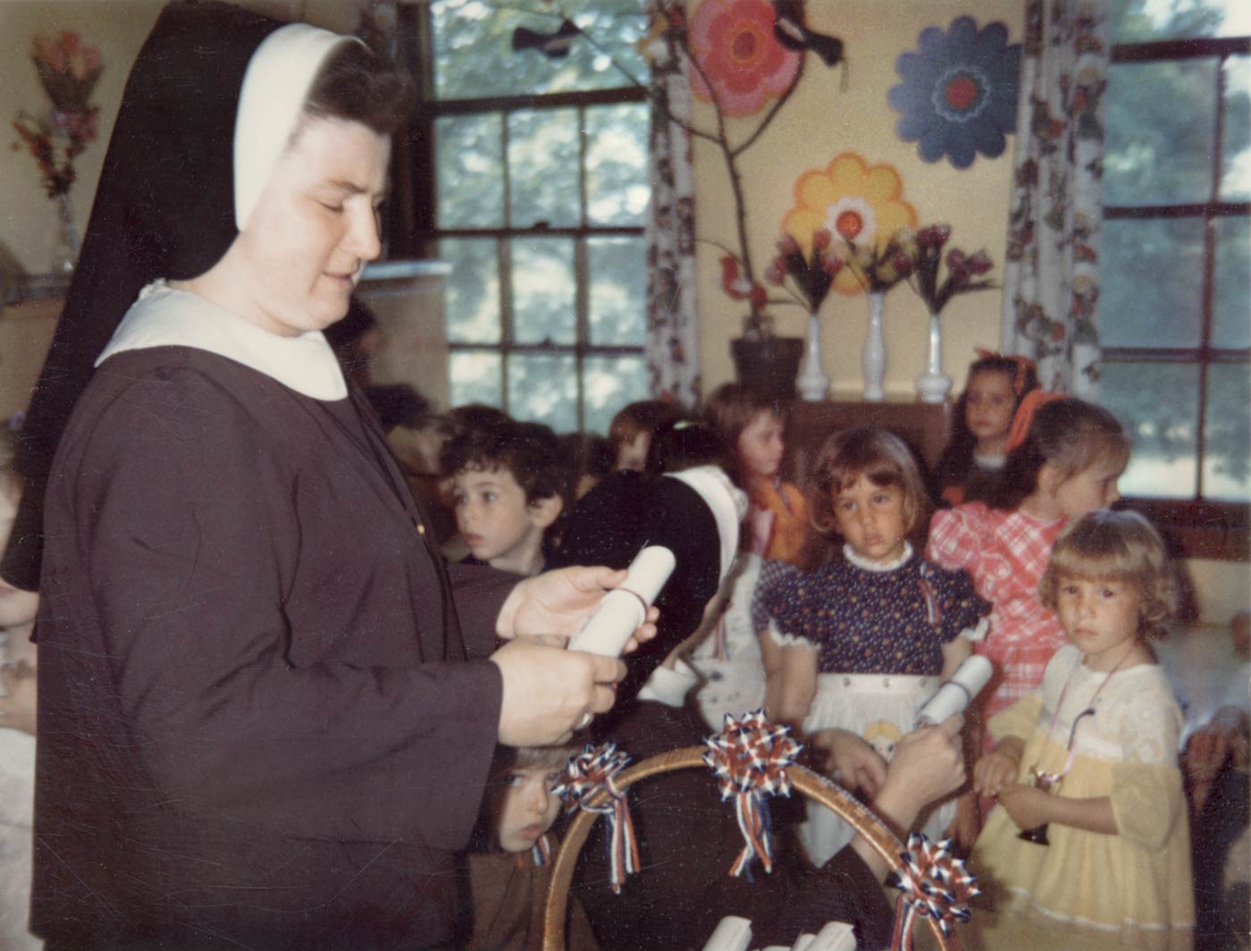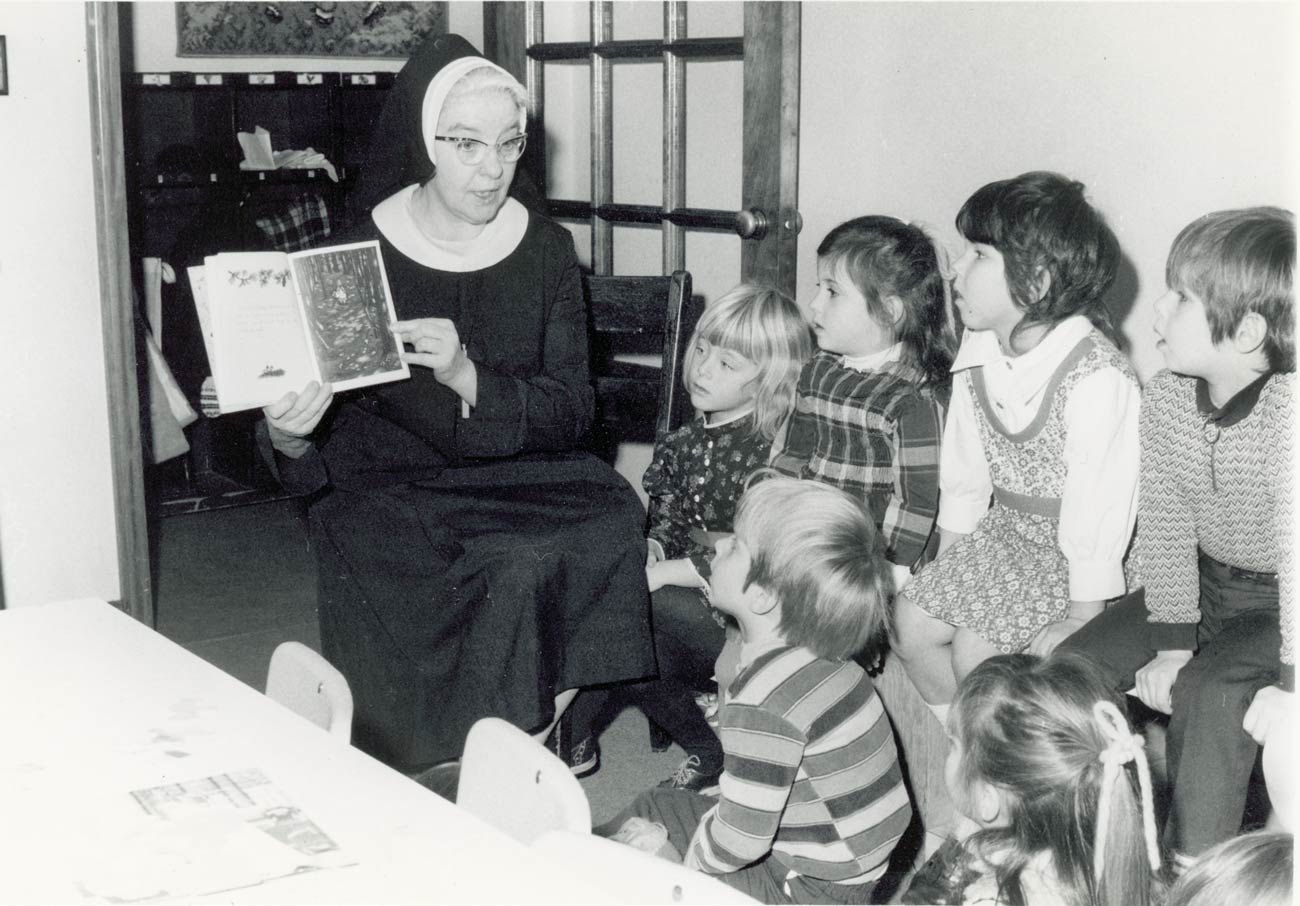 These photos are of Maria Nursery School, which was founded to assist working mothers. Beginning in Detroit in 1967, the school relocated to Livonia in 1977. Headed by Sister Mary Claudine Forys and assisted by Sister Mary Florian Kudla, the school prepared children for kindergarten and also offered summer day camp. As the need for the school diminished, Maria Nursery School closed in 1981.