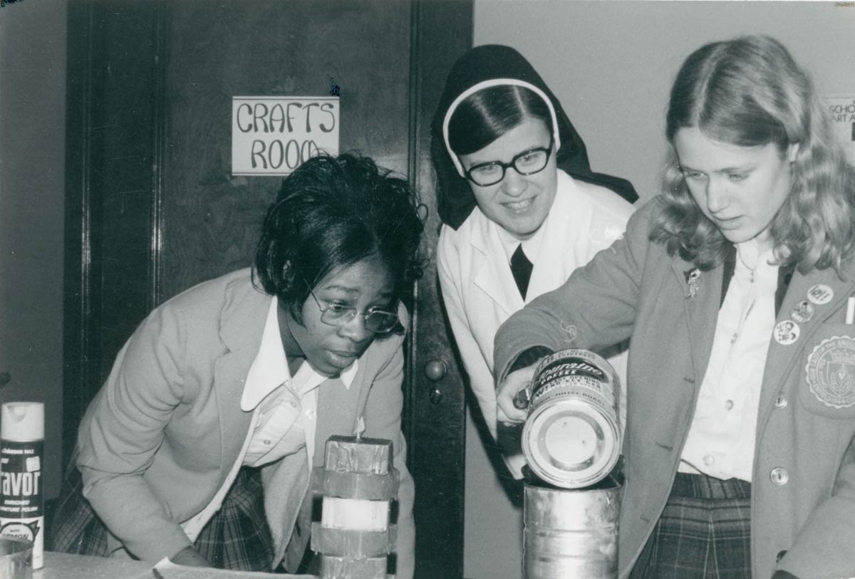Our Lady of the Angels Academy aspirants study in the school's science lab. The academy opened in 1944 with 11 transfer students from the New Jersey province and six girls from the New England area.