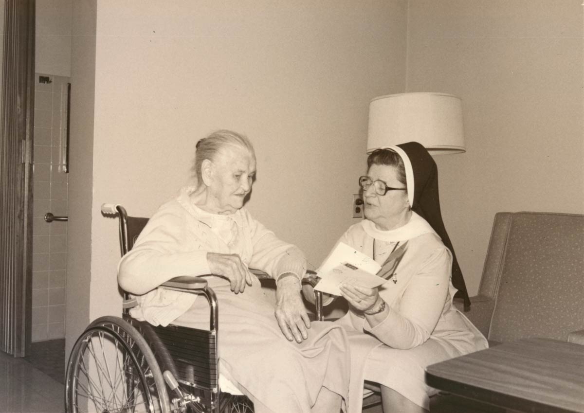 Sister Mary Gonzaga Zamojska reads to a resident at St. Ann Home in Greensburg, PA. As administrators of the senior home since its founding in 1964, Felician Sisters have instilled Felician core values into the fabric of the ministry, particularly respect for human dignity and compassion.