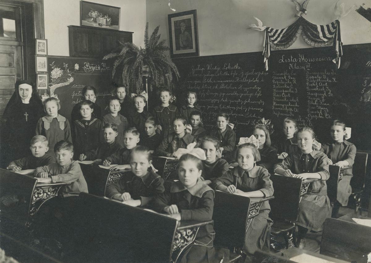 Orphans attending class at St. Joseph Home, then called St. Joseph Orphan Asylum, in 1918.