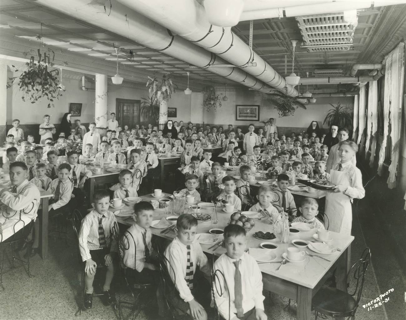The boy’s dinner tables at St. Joseph Home on Thanksgiving Day in 1931.