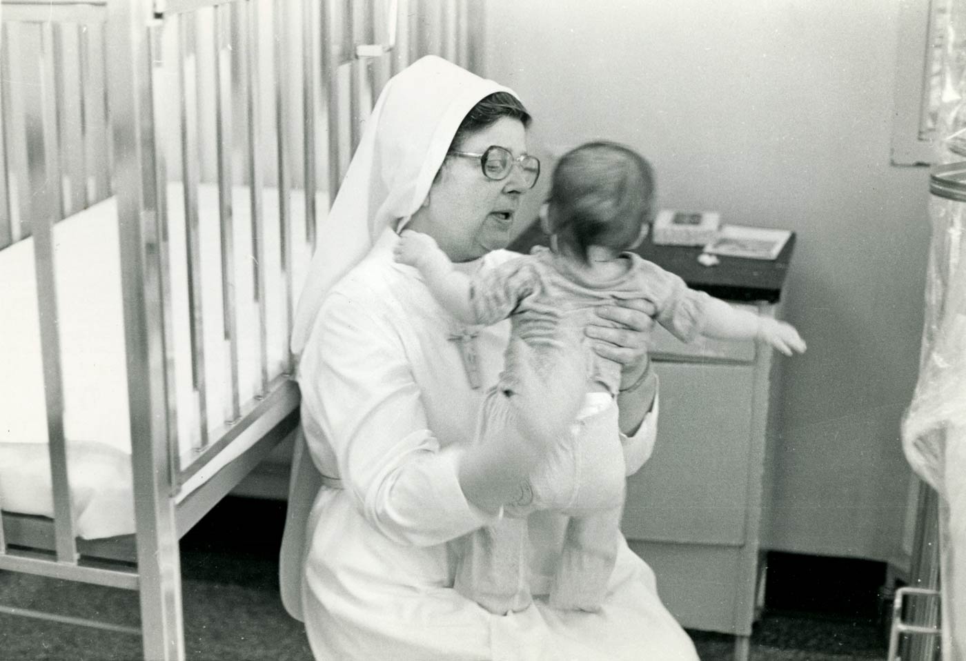 Nurse Sister Mary Alvina Gill in the nursery at St. Joseph’s Hospital in Philadelphia, Pennsylvania.