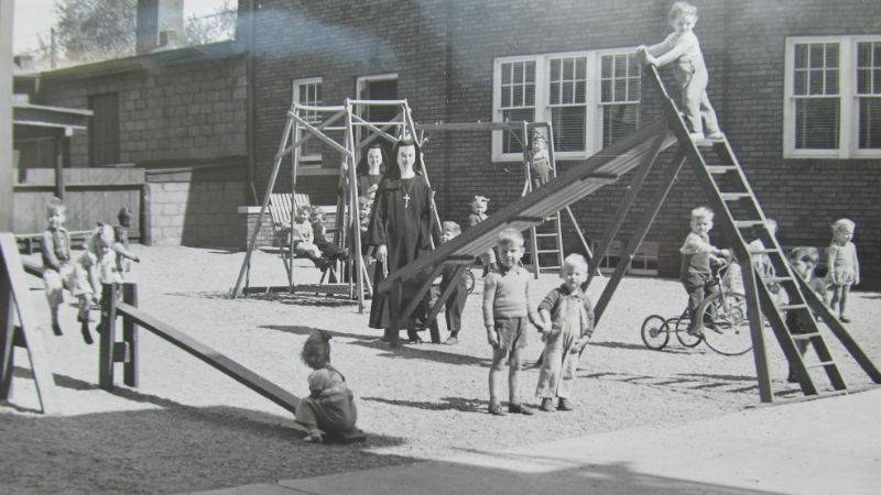 Felician Sisters supervised children on the playground of St. Stanislaus Day Nursery.